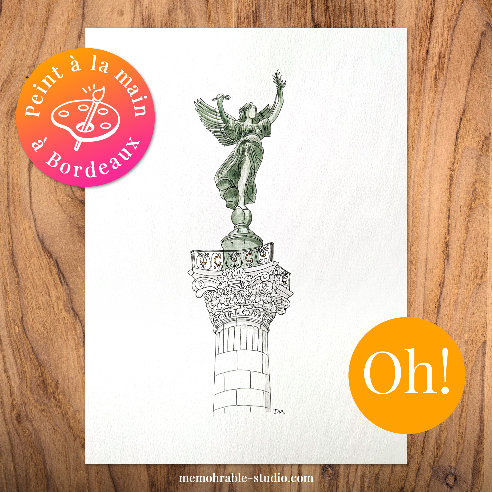Le Monument aux Girondins est un lieu emblématique de Bordeaux. Pour réaliser ce tableau, j’ai pris en photo de la célèbre colonne des Girondins, pour ensuite m’en servir de modèle.