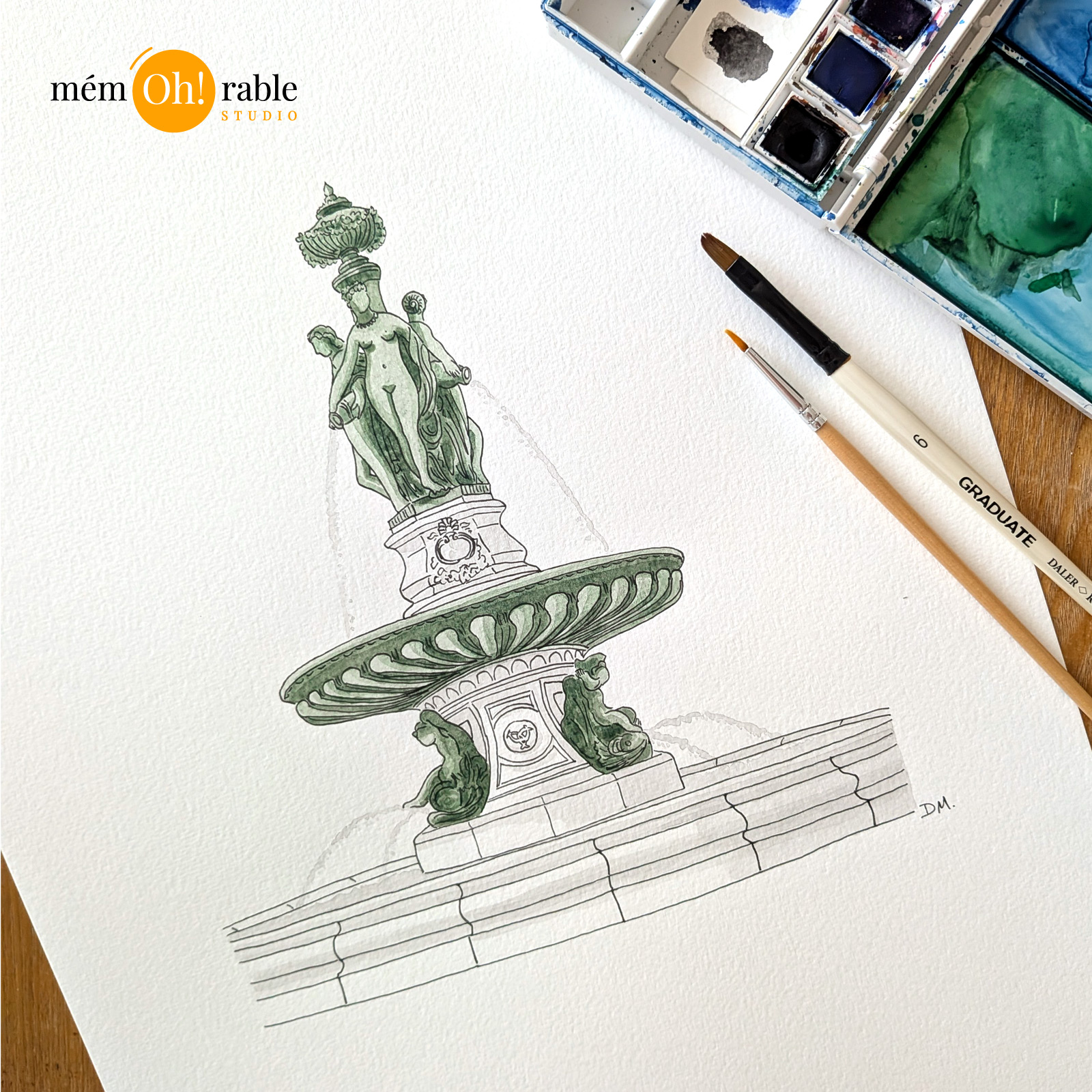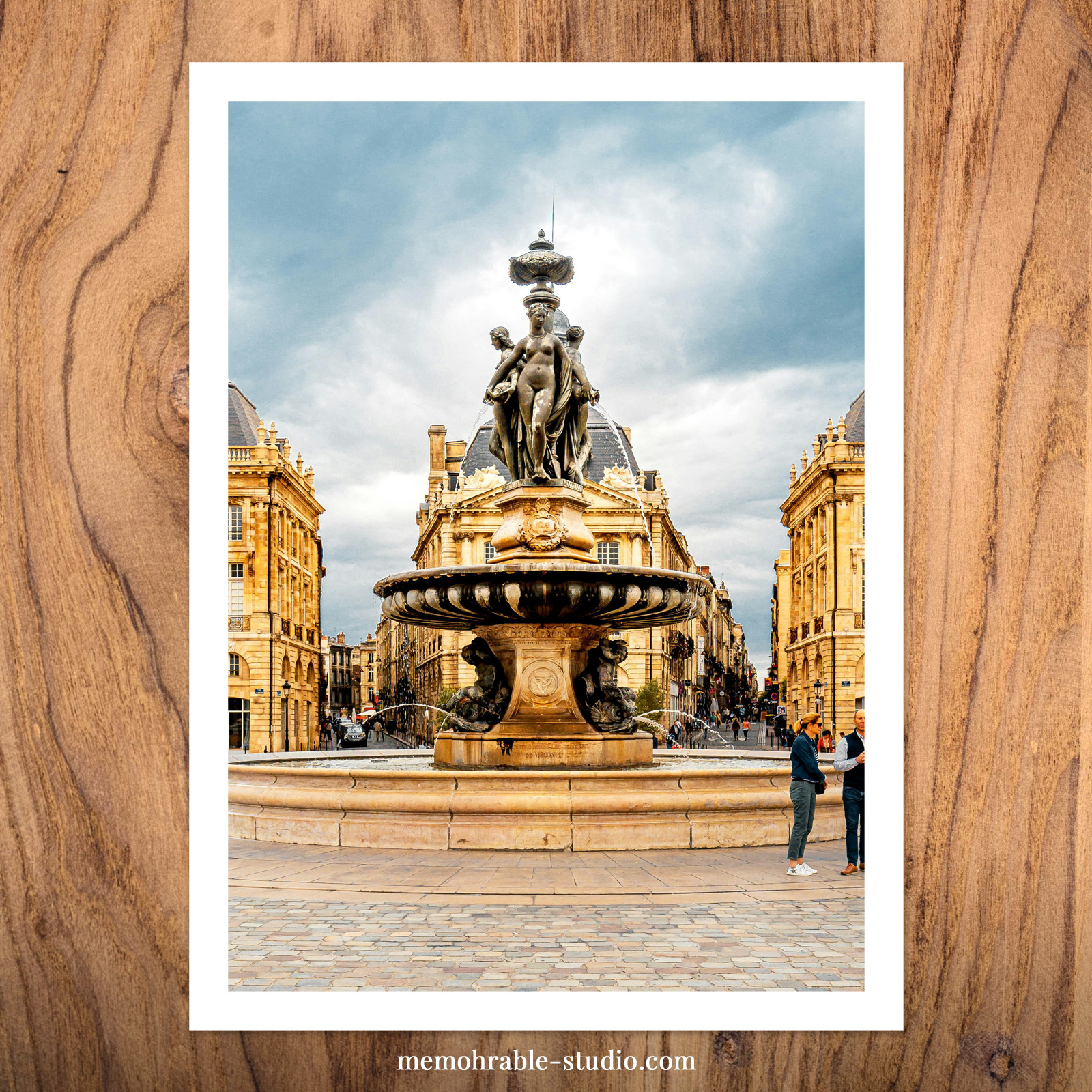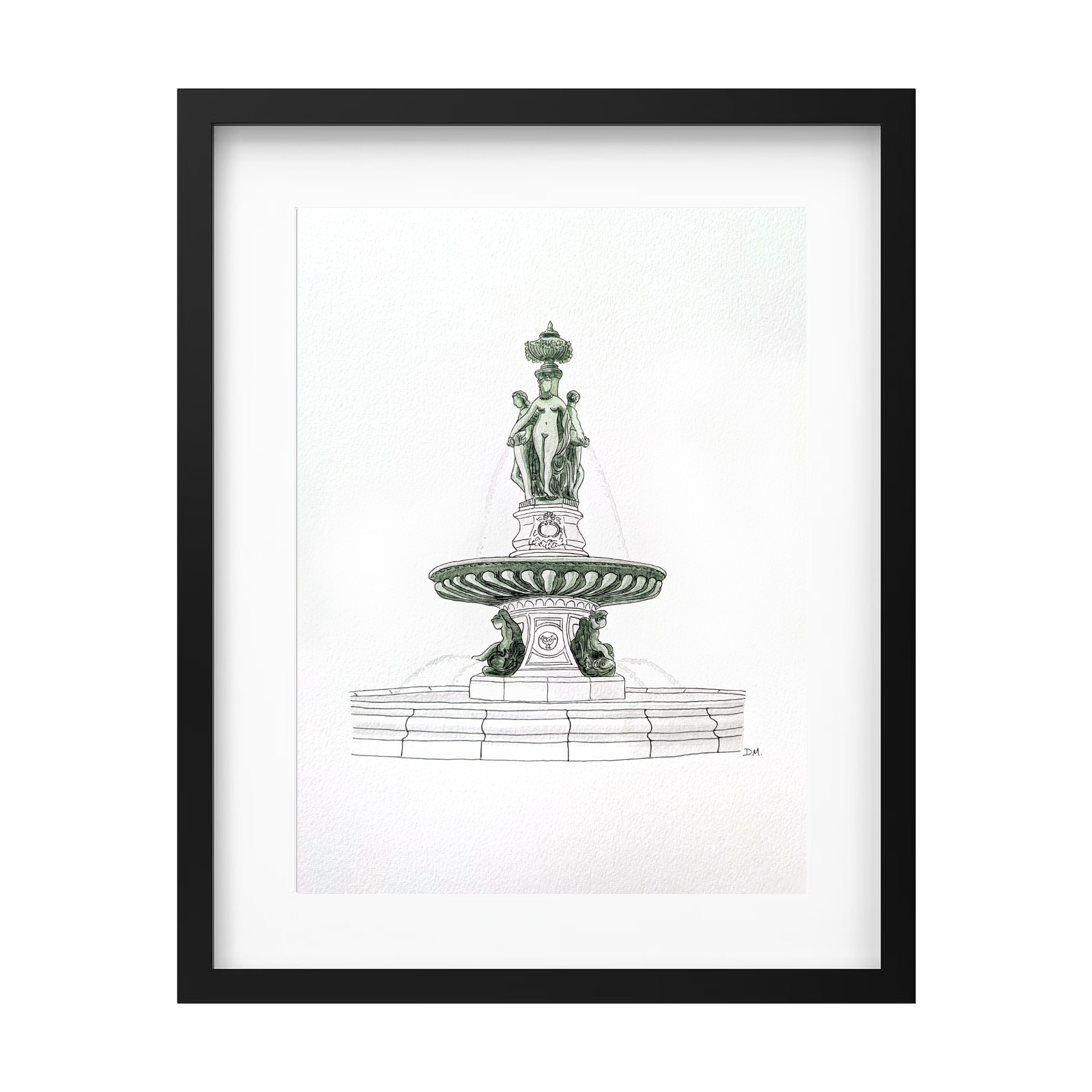 La Fontaine des 3 Grâces, située au coeur de la Place de la Bourse, est un monument emblématique de Bordeaux. Pour réaliser ce tableau, j’ai pris pour modèle une photo représentant cette fontaine bordelaise.
