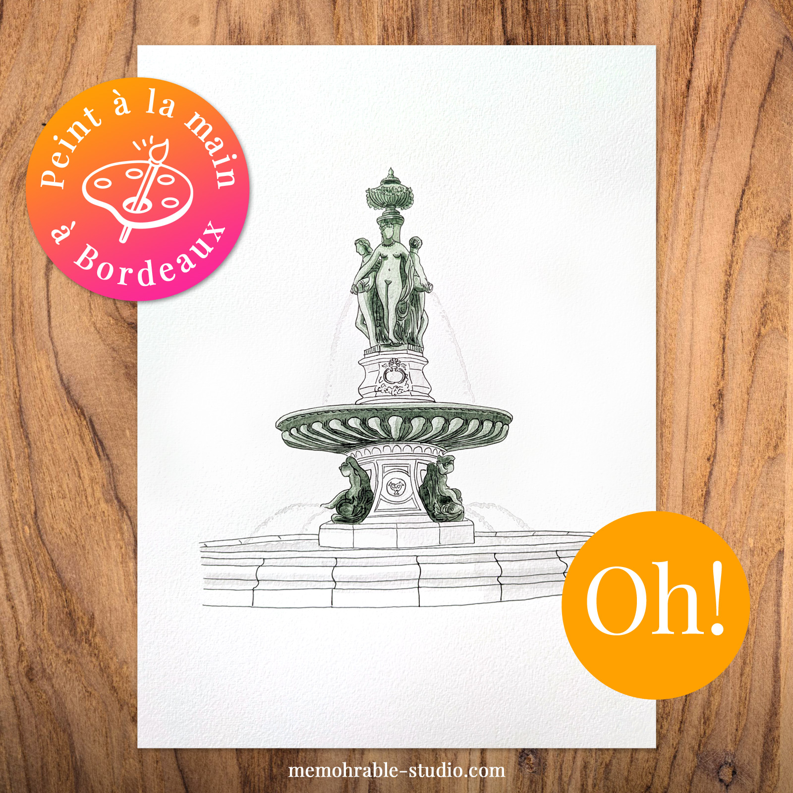 Cette illustration faite à la main et peinte à l’aquarelle, a été réalisée dans le cadre de l’exposition « Portraits et monuments bordelais » au Café de l’Horloge à Bordeaux.