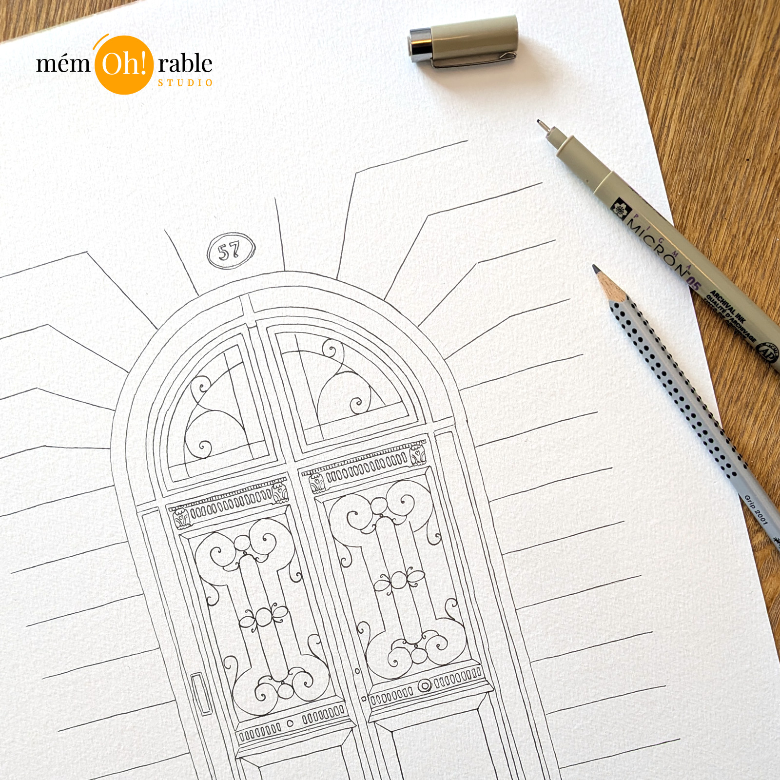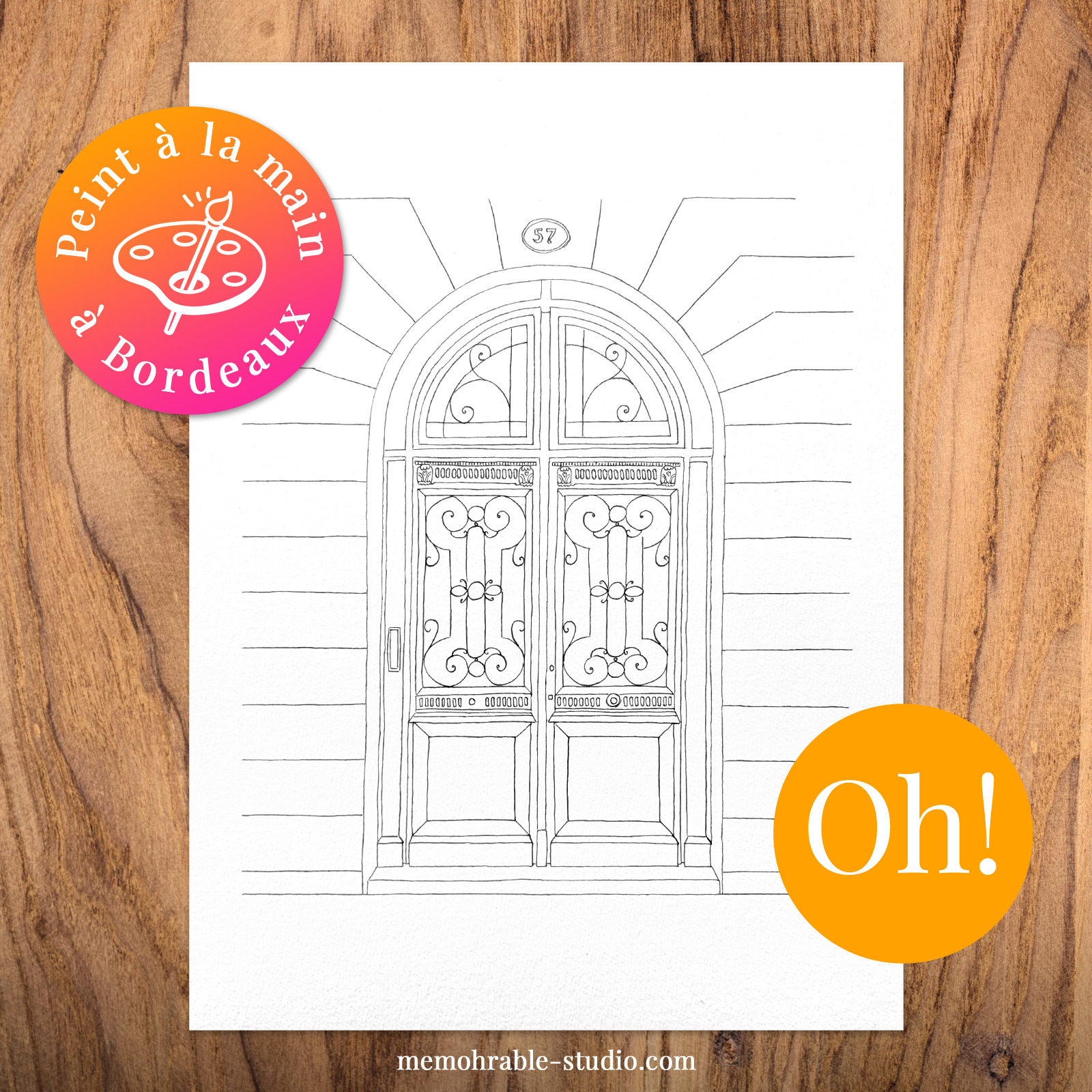 La ville de Bordeaux est connue pour son architecture haussmannienne. En vous baladant dans les ruelles de la ville, vous apercevez d’élégantes façades de maison et d’immeuble. Les portes sont toutes plus impressionnantes les unes que les autres. Pour réaliser ce tableau, j’ai pris en photo l’une de ces belles portes, pour ensuite m’en servir de modèle.